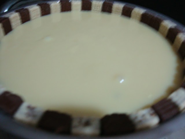 Retire a massa da geladeira, espalhe no pirex grande, coloque o recheio frio.